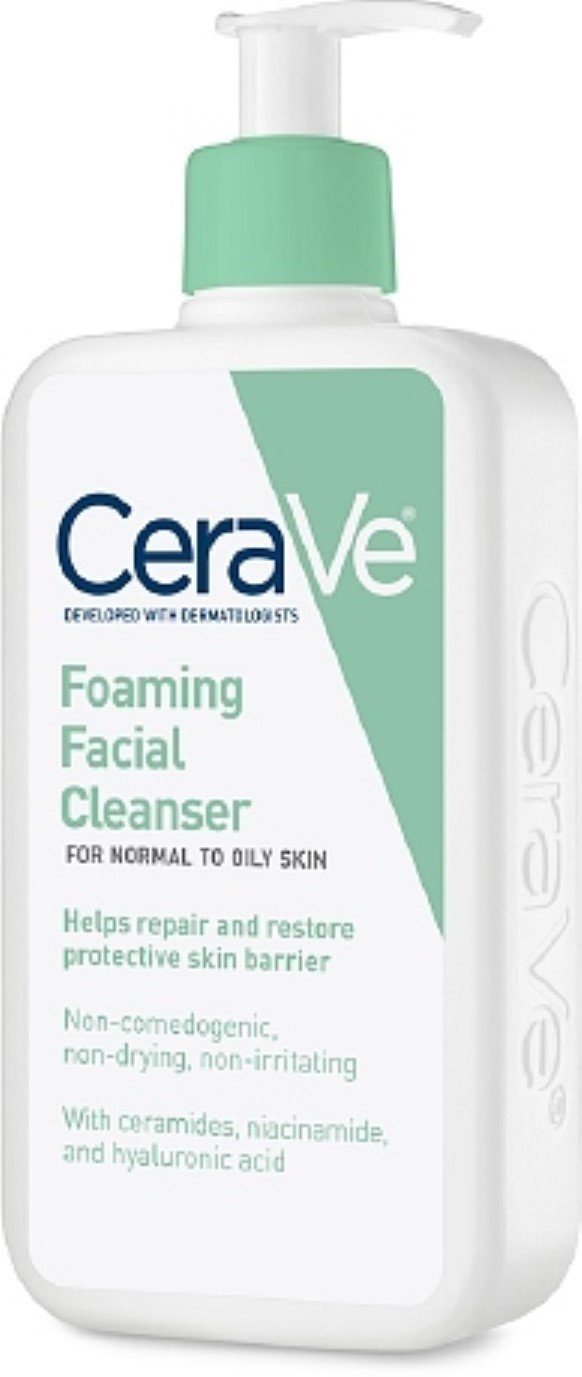 The CeraVe Foaming Facial Cleanser is a drugstore staple that effectively removes excess oil, dirt, and makeup without stripping your skin of moisture. Its formula includes ceramides and hyaluronic acid to retain moisture, along with niacinamide for skin calm.